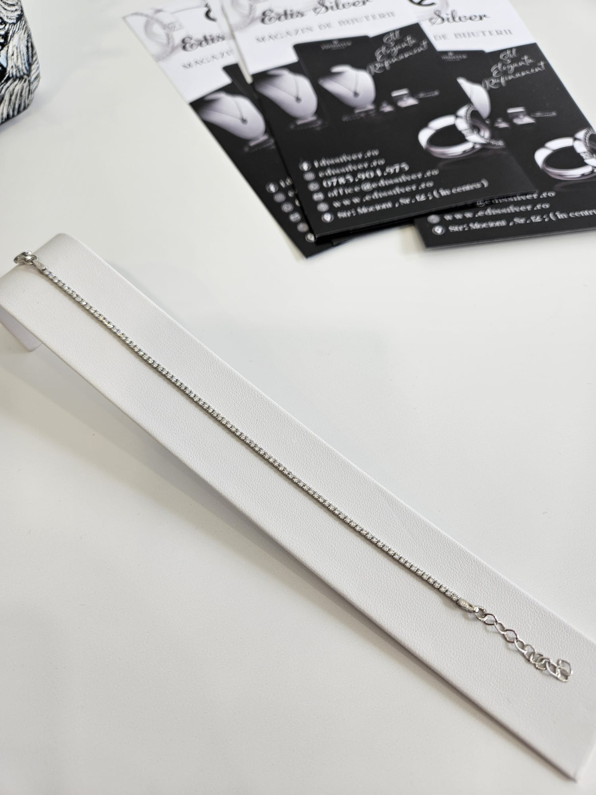 Material: Argint 925 de înaltă calitate, placat cu rodiu pentru un plus de strălucire și durabilitate. Cristalele Zirconia de 2 mm, perfect tăiate, adaugă un efect sclipitor, transformând fiecare mișcare într-un spectacol de lumină.